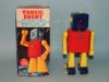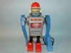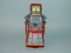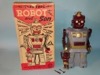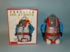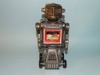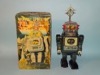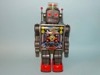 | Lot # 38 - MR. ROBOT: Yonezawa..10.5"H tin BO. Moves with mystery action as head lights and brain spins. The color wheel attached to his brain needs to be reattached C8 | ||