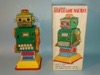 | Lot # 51 - MEGO MAN: Yoneya..O/B..7"H tin WU. Wheels turn , arms move, bell rings and mouth opens and closes as he moves. Box has several repaired tears VG-C8 | ||