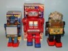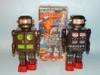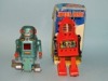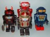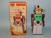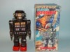 | Lot # 36 - LOT OF 3 ROBOTS: Includes 1) SUPER ASTRONAUT: TAIWAN..O/B..11.5"H plastic BO. Not working. E-C9+. 2) PISTON ROBOT: SJM (Taiwan)..11"H tin/plastic BO. Runs and lights but doesn't move. C8. 3) VIDEO ROBOT: Horikawa..O/B..9.5"H tin/plastic BO. Screen lights but doesn't run. One foot missing two wheels and the connecting pins. E-C8 | ||