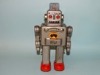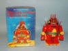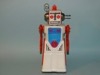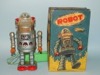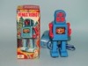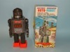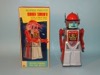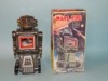 | Lot # 19 - MARS KING: Horikawa..9.25"H tin BO. Missing the rubber treads. One side of the torso dented. Factory touchup on the shoulders as most examples have. A little work and this would be a nice example C8 | ||