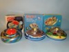 | Lot # 309 - LOT OF 3 TIN TOYS: Includes 1) ARMY DUCK: Kokyu..O/B..8.5"L tin FR. Helicopter circles as gun fires. Rod holding helicopter bent. Box has several tears. VG-C8. 2) MOTORCYCLE: Ichimura..O/B..3.75"L tin FR. Original bag with header card. NM-C10. 3) WORLD TRAVELING: Takatoku..O/B..4"W tin FR. Two planes circle. E-C8 | ||