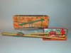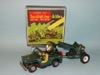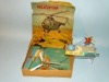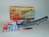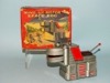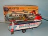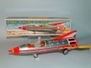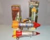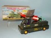 | Lot # 61 - I.C.B.M. LAUNCHING STATION: Horikawa..O/B..18.75"L tin FR. Crank operated station launches the vehicle and missile. Complete with two missiles and the crank. Box has a repaired corner VG-C8 | ||