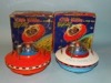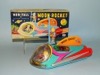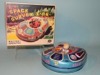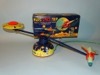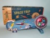 | Lot # 92 - SPACE TRIP: Masudaya..O/B..19.5"L tin BO. Two small cars are propelled on the track around the solar system as the wheel with colored lights spins and the toy makes a space sound. Celluloid discs are in good shape. Box has a couple of side panel repairs and a small front panel tear VG-C9 | ||