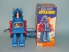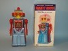 | Lot # 56 - LOT OF 2 ROBOTS: Includes 1) JUPITER ROBOT: Yoshiya..O/B..7"H plastic WU. Moves with walking motion. Tin instrument panels. No spark. VG-C9. 2) MIGHTY ROBOT: Noguchi..5.5"H tin WU. No spark. C8 | ||