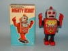 | Lot # 77 - MIGHTY ROBOT: Yoshiya..O/B..11.75"H tin/plastic BO. Moves with mystery action, lighted head, spinning head gears and clicking noise. Box has two punctures and two cuts along the right edge VG-C8/9 | ||