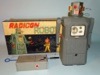 | Lot # 76 - RADICON ROBOT: Masudaya..14.75"H tin BOR. Wireless remote control robot advances with swinging arms, lighted flashing eyes and spinning ears as the chest panel lights and electrode sparks. Clicking the remote controls the direction and stop/go functions. Remote has a little wear on one side C8 | ||
