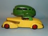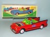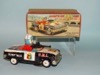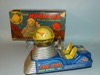 | Lot # 15 - SATELLITE LAUNCHING TRUCK: Yonezawa..O/B..12"L tin FR. Windup launcher send satellites into space. Includes two satellites (one is repaired). Space scene on rear screen. Dome is in nice shape. Small antenna has a stem repair but is original. Box has light creasing E-C8/9 | ||