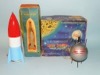 | Lot # 381 - SAM THE SHAVING MAN: Plaything..O/B..12"H mixed material BO. Sam applies powder then shaves as his face lights. Complete with the mirror. Box has a small front panel hole VG-C9 |