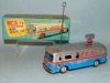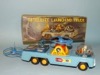 | Lot # 354 - CIRCUS PARADE: Masudaya..O/B..12.75"L tin BO. Moves with mystery action, horn and engine sound as the cab shakes. Box has corner wear and a small repaired tear VG-C8/9 | ||