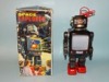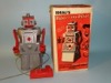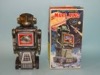 | Lot # 12 - MR. ZEROX: Horikawa..O/B..9.25"H tin/plastic BO. Moves with walking motion. Stops and lighted guns pop out and fire. Box has a small repaired seam tear and some creasing VG/E-C8/9 | ||