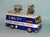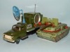 | Lot # 13 - MOBILE SATELLITE TRACKING STATION: Yonezawa..O/B..8.5"L tin BO. Moves in forward/reverse as radar dish turns and a space scene plays on the screen. Rear corners on the sides have shallow dents. Box has stains around the staples and a front panel crease. Hard to find toy and box E-C8 | ||