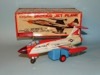 | Lot # 324 - ROCKET FIGHTER: Marx..12"L tin WU. Good color. Mechanism works but wheels don't move. No spark. Replaced fin C7/8 | ||