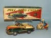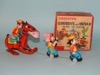 | Lot # 321 - CIRCUS CLOWN CYCLIST: Japan..O/B..5.5"H tin WU. Nice color. Box has a replaced bottom panel and has been lined..VG-C8 | ||