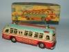 | Lot # 301 - TOURIST BUS: Nomura..O/B..12.25"L tin FR. Bonnet bus marked "New York" on the destination sign. Nice color. Box has several repairs and two small missing corner pieces. Scarce toy with a rare box G/VG-C8 | ||