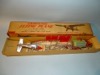 | Lot # 331 - NATIONAL CHILD WINDMILL: Marusan..O/B..8"H tin WU. Celluloid balls spin and music plays as the top of the windmill turns. Beautiful color and condition. Nice box has a little surface paper loss on one side panel. First time I've seen this..E/NM-C9+ | ||