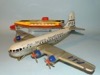 | Lot # 286 - LOT OF 3 TIN AIRPLANES: Includes 1) EASTERN AIR LINES DC-7C: Yonezawa..10.5"WS tin FR. C7/8. 2) UNITED AIR LINES DC-7C: Yonezawa..10.5"WS tin FR. Missing the tail wheel. Not working. C7. 3) DOUGLAS SEVEN SEAS DC-7C: Japan..7"WS tin FR. C8. | ||