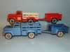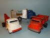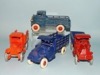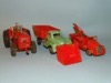 | Lot # 296 - LOT OF 3 TIN TOYS: Includes 1) TRACTOR: Gama..6"L tin WU. Missing the trailer. C8. 2) TOW TRUCK: Tekno..6"L tin. Missing the tow hook. Spare has flat spots. C7. 3) DUMP TRUCK: Gama..11"OAL tin FR. Bed has some rust. C7 | ||