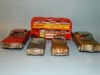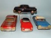 | Lot # 282 - LOT OF 4 TIN CARS: Includes 1) 1959 PLYMOUTH HARDTOP: Alps..11"L tin FR. Missing the rear fins. C7. 2) 1952 FORD SEDAN: Marusan..10.25"L tin BOR. Missing the remote and one wheel cover. C7. 3) 1965 FORD THUNDERBIRD: ATC..12.25"L tin FR. Missing a wheel cover. Paint loss on the hood and trunk. C7. 4) 1950'S MERCEDES BENZ 190SL: Japan..9"L tin BOR. Missing the remote and window plastic. C7. Nice parts lot or restore them | ||