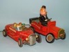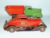 | Lot # 290 - LOT OF 2 PRESSED STEEL TOYS: Includes 1) FIRE CHIEF CAR: Hoge..14"L PS WU. Moves with siren. BO lights not working. C7. 2) DUMP TRUCK: Wyandotte..16"L PS WU. Wood wheels. Mechanism not working. C7 | ||