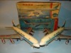 | Lot # 303 - LOT OF 2 TIN AIRPLANES: Includes 1) PASSENGER PLANE: China..O/B..18"WS tin BO. Works intermittently. Engine lights not working. Box has a small hole. G-C8. 2) JET AIRLINER: China..O/B..18"WS tin BO. Not working. Box has tears. G/VG-C8 | ||