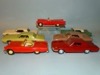 | Lot # 297 - LOT OF 5 TIN VEHICLES: Includes 1&2) 1967 CADILLAC HARDTOP: Bandai..13"L tin FR. Both missing the mirrors. One mechanism not working. C7. 3) 1963 CADILLAC CONVERTIBLE: Bandai..8"L tin FR. C8. 4) 1960'S VOLKSWAGEN: Bandai.8"L tin FR. C7. 5) DOUBLE DECKER BUS: Japan..10"L tin FR. C7 | ||