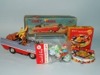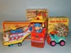 | Lot # 343 - LOT OF 2 TOYS: Includes 1) ZIG-ZAG RACE: Yonezawa..O/B..20"L tin BO. Four plastic motorcycles and go carts circle the track. Box has corner tears. VG-C9 2) LIFT GARAGE: Technofix..O/B..15.5"W tin/plastic WU. Lift moves cars to the top level. Includes three cars. Box has minor tears. VG/E-C9 | ||