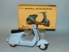 | Lot # 312 - VESPA G.S. SCOOTER: Bandai..O/B..8.75"L tin FR. Hard to find baby blue color. Complete with the hand grips. Box has several repaired tears VG-C9 | ||