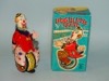 | Lot # 330 - HAPPY UNCLE: Masudaya (Occupied Japan)..6.75"H tin WU. Hands wave as he changes facial expressions. Small paint chip on one hand. Box has a couple of repaired tears. Rare toy and box VG/E-C8 | ||