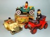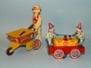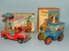 | Lot # 344 - LOT OF 2 WINDUP TOYS: Includes 1) HOKY POKY: 6.5"L tin WU. Clowns pump handcar. Area of surface rust. C7. 2) EL DULCERO VELOCIN: Plastimarx..7.75"H tin/plastic WU. Writing in paint on the inside of the cart. Mechanism slips. C7 | ||