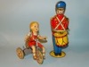 | Lot # 325 - LOT OF 2 TIN WINDUP TOYS: Includes 1) DRUMMER: Wolverine..13"H tin WU. Good color. Minor drum surface wear. C8. 2) KIDDIE CYCLIST: Unique Art..8.5"H tin WU. Bell rings as boy pedals. C8 | ||