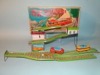 | Lot # 332 - SKY-DRIVE COASTER: TPS..O/B..15"L tin WU. Car moves back and forth on the track as bell rings. Nice color and condition. Box has some light soiling. Hard to find TPS toy that isn't in Bill Gallagher's TPS book E-C9 | ||