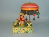 | Lot # 339 - BOARDWALK DELIGHT: Alps..6.5"W tin/celluloid WU. Girl in bathing suit rocks and goose honks as umbrella spins. Hard to find square table with dome shape umbrella version. Head has a small split and is loose C7 | ||