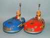 | Lot # 352 - LOT OF 2 BATTERY TOYS: Includes 1) BUMPING CAR-BLUE: Alps..10"L tin BO. One side pushed in. Not working. C8. 2) BUMPING CAR-ORANGE: Alps..10"L tin BO. Missing the battery door latch. Not working. C8 | ||