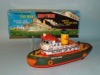 | Lot # 353 - TUGBOAT NEPTUNE: Masudaya..O/B..14.5"L tin BO. Moves with mystery action and light as it shakes and whistles. Complete with the rubber trim pieces. Nice color and condition. Box has a small front panel tear VG-C9 | ||