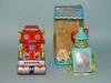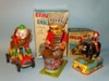 | Lot # 356 - LOT OF 3 BATTERY TOYS: Includes 1) CYCLING DADDY: Bandai..O/B..10"H mixed material BO. Works but very sluggish. Front fender need a repair. Box has water stains. V-C8. 2) BARTENDER: Nomura..O/B..11:H mixed material. Smoke function not working. Box missing a side corner. G/VG-C8. 3) HAPPY'N SAD FACE CLOWN: Yonezawa..O/B..10"H mixed material BOR. Box has a repair on one end panel and a front panel tear. VG-C9 | ||