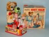 | Lot # 369 - LOT OF 2 BATTERY TOYS: Includes 1) SPANKING BEAR: Linemar..O/B.."'H mixed material BO. Mother spans crying baby bear. Box has a small area of surface paper damage. VG-C9. 2) PINKY THE JUGGLING CLOWN: Alps..O/B..19"OAH mixed material BO. Nice color. Yellow celluloid ball damaged. Needs assistance to run. VG-C8/9 | ||