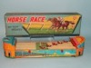 | Lot # 364 - HORSE RACE: Japan..O/B..16"L tin BO. Open the starting gate and five small tin horses race down the track. Winner's lane lights. Nice color and condition. Complete with all five horses. Nice box. First time I've seen this E/NM-C9 | ||
