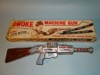 | Lot # 366 - SMOKE MACHINE GUN: Tada..O/B..21.5"L tin BO. Kick-action (gun shakes), firing noise and smoke (working). Box has a water stain and several tears G-C8/9 | ||