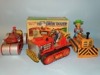 | Lot # 375 - LOT OF 3 BATTERY TOYS: Includes 1) BULLDOZER: Daiya..9"L tin BO. Moves with mystery action. Smoke function not working. C8. 2) ROAD ROLLER: Yonezawa..9"L tin BO. Moves with mystery action and working lights. Sluggish. C8. 3) HI-POWER DOZER: Nomura..O/B..10"L tin BO. Pull cord switch operation. Not working. VG-C9 | ||