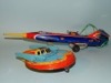 | Lot # 365 - FLYING PLATFORM: SN (Japan)..O/B..8.5"H tin BO. Moves with mystery action and rifle with flashing light. Box has a couple of small repaired tears. Hard to find toy VG/E-C9 | ||
