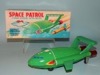 | Lot # 90 - SPACE PATROL: Aoshin..O/B..10"L tin/plastic BO. Unlicensed knockoff of the Jerry Anderson Thunderbird 2 rocket. Moves with mystery action, engine noise and flashing lights. Tin body with plastic fins. Box has a repaired corner. Rare VG/E-C8 | ||
