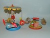 | Lot # 334 - GO ROUND SWING: Japan..8.5"H tin WU. Pre-war toy with three riders. Tower has some paint loss. Probably missing a flag or something on the top C8 | ||